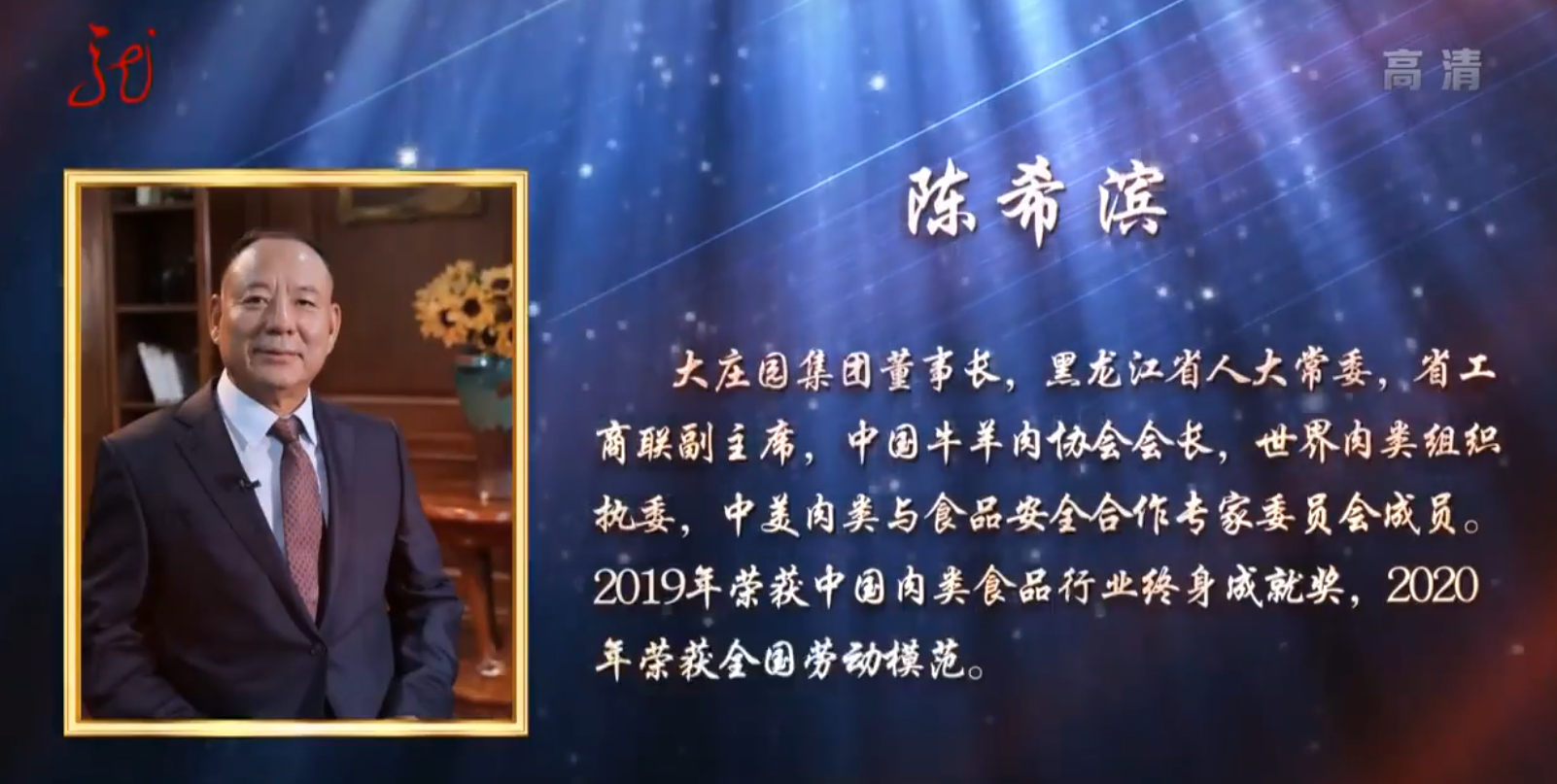 2019年9月24日,大莊園集團(tuán)董事長(zhǎng)陳希濱先生榮膺中國(guó)肉類食品行業(yè)最高個(gè)人獎(jiǎng)項(xiàng):“終身成就獎(jiǎng)”,成為中國(guó)牛羊肉行業(yè)獲此獎(jiǎng)項(xiàng)的第一人。