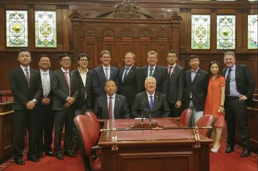 2015年11月2日,陳希濱董事長在西澳議會立法委員會主席巴里·豪斯、西澳立法委員會上議會議員馬克·劉易斯、西澳州政府農(nóng)業(yè)食品部經(jīng)理特里的陪同下,參觀了西澳國會大廈和上下議院,并在議會大廈共進午餐。