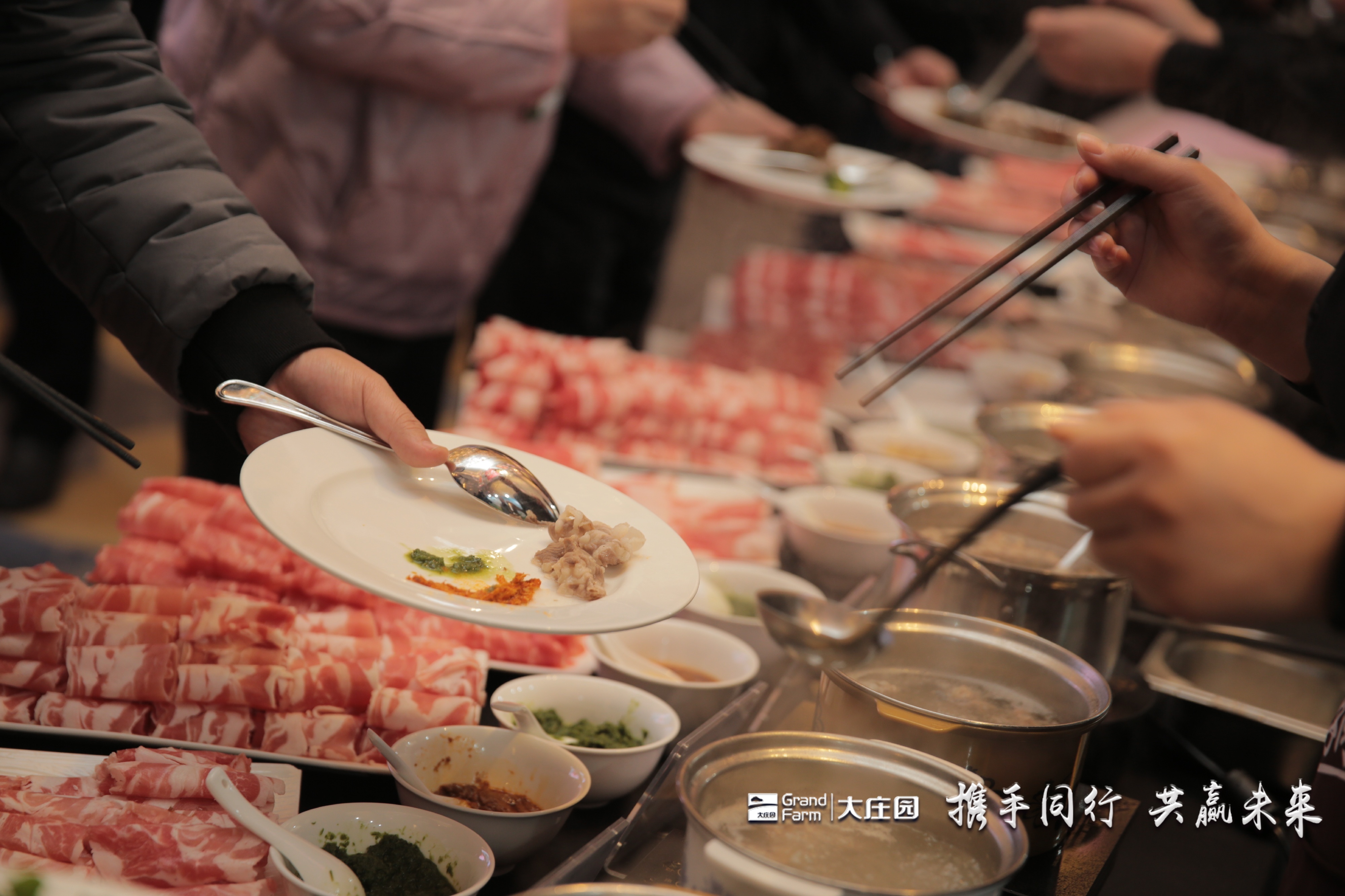 來(lái)自內(nèi)蒙古錫林郭勒的草原稀珍——烏珠穆沁羊,新西蘭南阿爾卑斯山孕育的雪山羔羊,來(lái)自南美洲巴西的純血谷飼安格斯牛,分別由大莊園羊產(chǎn)品事業(yè)部總經(jīng)理李萬(wàn)利先生、大莊園親密合作伙伴世界最大羊肉出口企業(yè)新西蘭阿蘭茨集團(tuán)的生產(chǎn)品控負(fù)責(zé)人David Kean先生和大莊園牛產(chǎn)品事業(yè)部總經(jīng)理孫博先生帶到了客戶面前……“整合全球優(yōu)質(zhì)生態(tài)牛羊肉資源”,大莊園一直在路上。